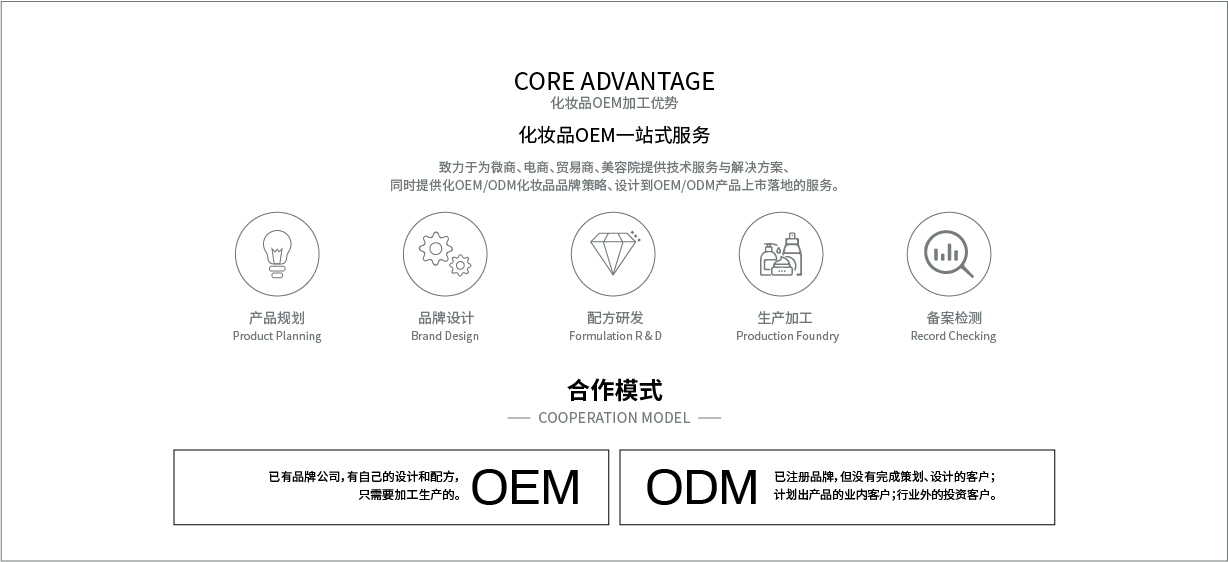 公司始創(chuàng)建于2012年,經(jīng)過八年的健康發(fā)展,已經(jīng)成為可以從事妝字號、消字號、械字號等系列產(chǎn)品生產(chǎn)加工的大型企業(yè)。企業(yè)坐落在美麗的廣州白云區(qū)鐘樓潭鎮(zhèn),擁有面積超過15,000平方米的生產(chǎn)廠房。廠房寬敞明亮,設(shè)計(jì)科學(xué)新進(jìn),擁有十萬級的生產(chǎn)車間,局部環(huán)境可以達(dá)到一萬級別;設(shè)備多采用新進(jìn)的進(jìn)口設(shè)備,自動化程度非常高,擁有一流的生產(chǎn)設(shè)施。工廠同時通過了ISO22716和GMCP質(zhì)量管理認(rèn)證,擁有一流的質(zhì)量管理體系。廠